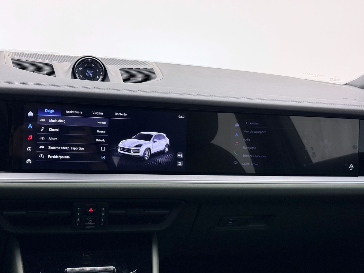 PORSCHE CAYENNE 2024 Rodas aro 22", Aquecimento e resfriamento dos bancos, Interior em couro bicolo, Pacote de destaque silvershade, Teto solar panorâmico, Som BOSE, Câmera de ré 360º, Suspensão Pneumática, Escapamento esportivo com ponteiras em prata,Pacote Sport Chrono Volante multifuncional com shift paddles e aquecimento, Fechamento suave das portas, Sistema de qualidade do ar, Display do passageiro,PPF Frontal